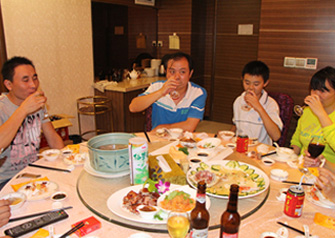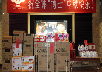 中秋到,祝團圓,2015年9月24日晚,我集團部分直屬部門相聚一起慶祝傳統中秋佳節,并進行了閩南特色文化活動——博餅。 晚會開始進行的是宴會,會上集團領導親自敬酒,祝大家節日快樂,身體健康,大家積極回應,其樂融融。酒足飯飽之后,開始重頭戲----擲骰子博餅競逐「狀元」銜頭,每圍按擲得「狀元」、「榜眼」、「探花」、「四進」、「舉人」及「秀才」,對應豐富獎品。全場歡聲笑語,氣氛熱烈。