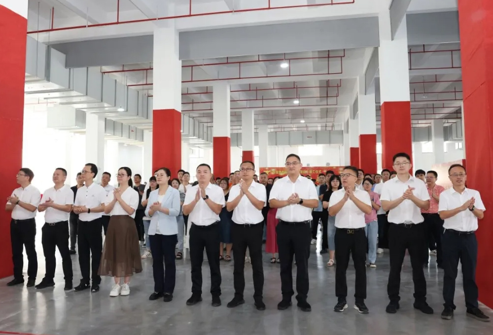 竣工儀式開始前,鎮黨委書記邱建明,鎮人大主席陳興隆,華寶集團吳金煌董事長,劉以森副董事長,劉德芳總經理,吳世金副總經理對產業園進行揭牌。
