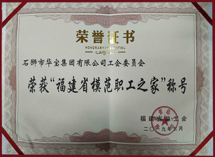 福建省模范職工之家證書